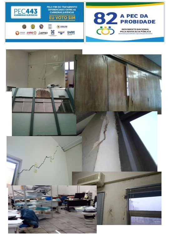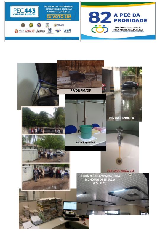 Boa parte das centenas de unidades da AGU apresentam condições claramente inapropriadas para a realização de um trabalho de altíssima relevância para a sociedade e para o Estado. Os problemas envolvem, entre outros: mobiliário inadequado, espaço físico reduzido, instalações elétricas e sanitárias deficientes, prédios antigos, condições de limpeza e conservação abaixo de níveis mínimos aceitáveis. Em casos mais graves, foram registrados sérias infiltrações de água e presença de morcegos e ratos.