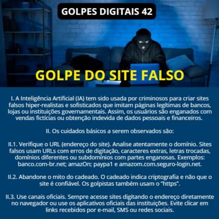Série GOLPES DIGITAIS A série oferece um extenso panorama sobre as ameaças e práticas de segurança no ambiente digital. Os cards abordam desde a alta incidência de tentativas de fraude eletrônica no Brasil até a identificação de sinais de alerta comuns em golpes, como pedidos de senha e senso de urgência. Grande parte do conteúdo é dedicada a medidas preventivas detalhadas, incluindo a criação de senhas fortes e únicas, a desativação de pagamentos por aproximação, a importância da autenticação de dois fatores e a cautela com links maliciosos e vídeos falsos gerados por inteligência artificial. Além disso, são apresentadas instruções específicas para lidar com fraudes bancárias, boletos falsos, golpes envolvendo transportadoras e o procedimento correto em caso de perda ou roubo de celular, enfatizando sempre a necessidade de desconfiar e verificar a autenticidade das comunicações. Livro GOLPES DIGITAIS O avanço na divulgação dos cards semanais apontou para a necessidade de organizá-los em uma publicação. Para tanto, seus conteúdos serão apresentados em seis blocos ou capítulos: a) contexto dos golpes digitais; b) antes dos golpes digitais; c) durante os golpes digitais; d) depois dos golpes digitais; e) documentos e sites relevantes e f) cards semanais. Acompanhe a elaboração do livro (clique aqui).