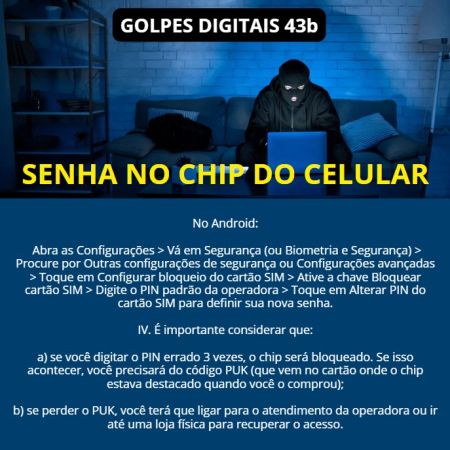 Série GOLPES DIGITAIS A série oferece um extenso panorama sobre as ameaças e práticas de segurança no ambiente digital. Os cards abordam desde a alta incidência de tentativas de fraude eletrônica no Brasil até a identificação de sinais de alerta comuns em golpes, como pedidos de senha e senso de urgência. Grande parte do conteúdo é dedicada a medidas preventivas detalhadas, incluindo a criação de senhas fortes e únicas, a desativação de pagamentos por aproximação, a importância da autenticação de dois fatores e a cautela com links maliciosos e vídeos falsos gerados por inteligência artificial. Além disso, são apresentadas instruções específicas para lidar com fraudes bancárias, boletos falsos, golpes envolvendo transportadoras e o procedimento correto em caso de perda ou roubo de celular, enfatizando sempre a necessidade de desconfiar e verificar a autenticidade das comunicações. Livro GOLPES DIGITAIS O avanço na divulgação dos cards semanais apontou para a necessidade de organizá-los em uma publicação. Para tanto, seus conteúdos serão apresentados em seis blocos ou capítulos: a) contexto dos golpes digitais; b) antes dos golpes digitais; c) durante os golpes digitais; d) depois dos golpes digitais; e) documentos e sites relevantes e f) cards semanais. Acompanhe a elaboração do livro (clique aqui).